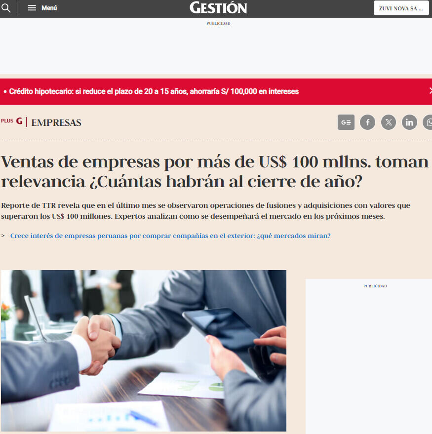Reporte de TTR revela que en el último mes se observaron operaciones de fusiones y adquisiciones con valores que superaron los US$ 100 millones. Expertos analizan como se desempeñará el mercado en los próximos meses.